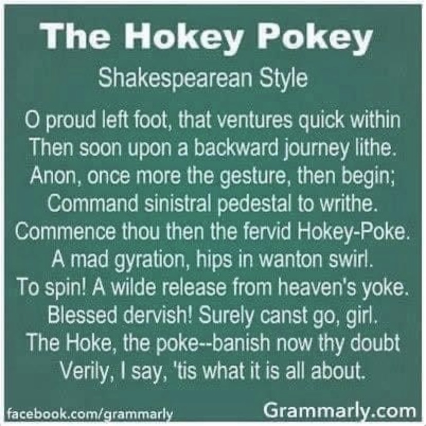 Thanks to Grammarly. com for the perfect Hokey Pokey tribute aka Mr. Shakespeare. Enjoy.
